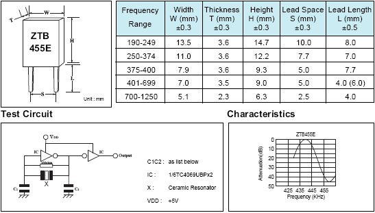 ZTB455E陶瓷諧振器,陶瓷晶振
