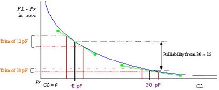 足以見得,上述方法都是對(duì)電容值進(jìn)行調(diào)整,那么電容與晶振頻率必然會(huì)存在一定的關(guān)系了,它們之間究竟有什么樣的關(guān)系呢?下面兩個(gè)公司分別是電容和頻率的計(jì)算方式: