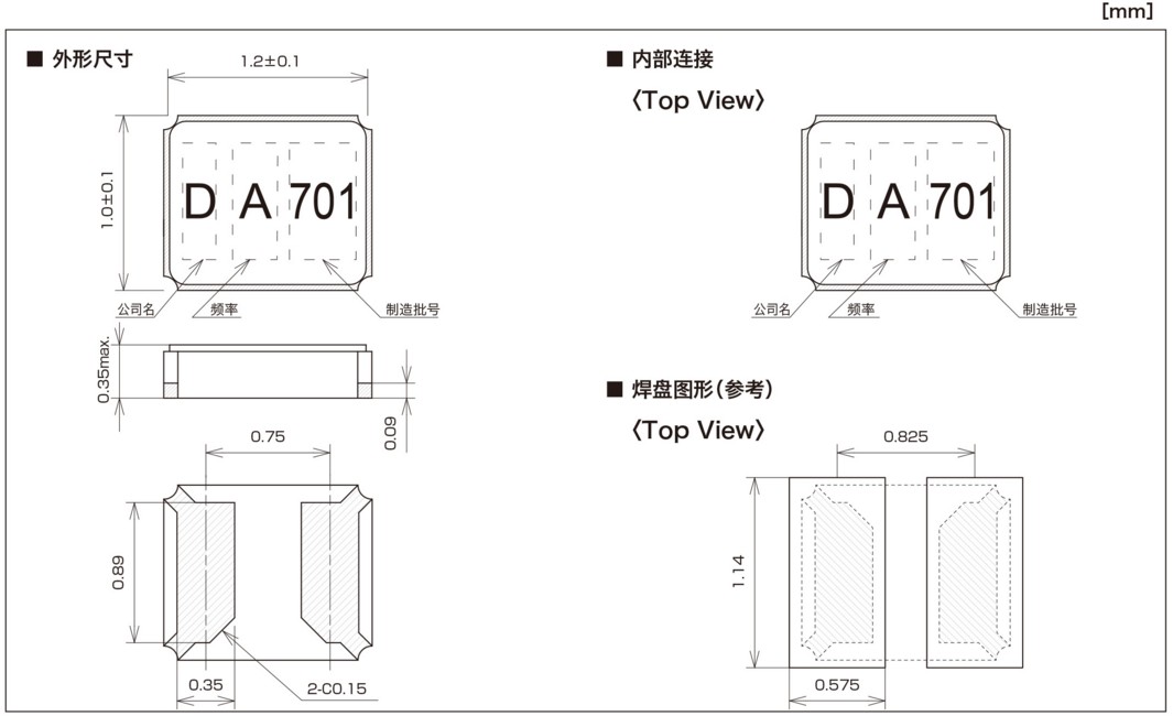 32.768K晶體諧振器,最小體積石英晶體,DST1210A石英晶振特點(diǎn),可穿戴設(shè)備晶振,DST1210A石英晶體諧振器型號是世界上體積最小,最薄的KHZ晶體諧振器32.768K晶振,長為1.2mmX寬為1.0mm的尺寸、厚度0.35mm max.DST1210A,無與倫比的小、薄如紙片、輕如鴻毛采用陶瓷外殼金屬蓋封裝,在產(chǎn)品中使用精度高不會隨著環(huán)境的變換而出現(xiàn)不穩(wěn)定的情況,精度溫度性強(qiáng)使用可靠性高.