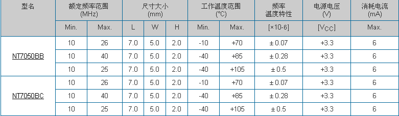 更多>>進口NT7050BC晶體,日本電波貼片晶振,十腳溫補晶體振蕩器