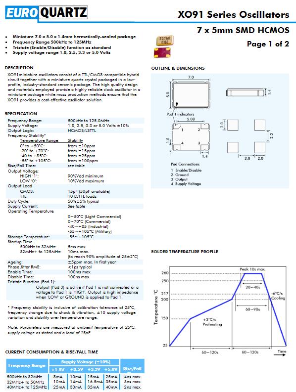 更多>>EUROQUARTZ晶振,XO91型號晶振,XO91050UITA-50.000MHZ晶振