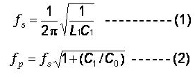 在評(píng)估共振時(shí)的等效線路時(shí), 串聯(lián)諧振頻率及并聯(lián)諧振頻率, fs and fp , 是最重要的二個(gè)頻率參數(shù). 對(duì)于串聯(lián)諧振頻率及并聯(lián)諧振頻率( fs and fp )二者的關(guān)系, 我們可以用下列公式來(lái)表達(dá): .png)