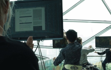 “全身鼠標(biāo)”的工作原理是通過(guò)一個(gè)復(fù)雜且遍布傳感器的凳子來(lái)完成操作,在你需要進(jìn)行點(diǎn)擊或者移動(dòng)鼠標(biāo)的時(shí)候,你就得不停的踢踢腿、扭扭屁股,動(dòng)作幅度太小還不一定能滑到你想要的位置.它的作用只是替代鼠標(biāo),打字之類的工作還是要用鍵盤來(lái)完成.根據(jù)目前放出的視頻來(lái)看,“全身鼠標(biāo)”最大的缺陷還是在于不夠好用,而且用起來(lái)樣子也有點(diǎn)耍猴戲的意思,雖然能保證足夠的運(yùn)動(dòng)量,但在辦公室里玩這一出恐怕不大合適.一陣小小的激動(dòng)之后,又不免有些擔(dān)憂:這工作起來(lái)該多累?。抗ぷ餍适遣皇菚?huì)下降阿?