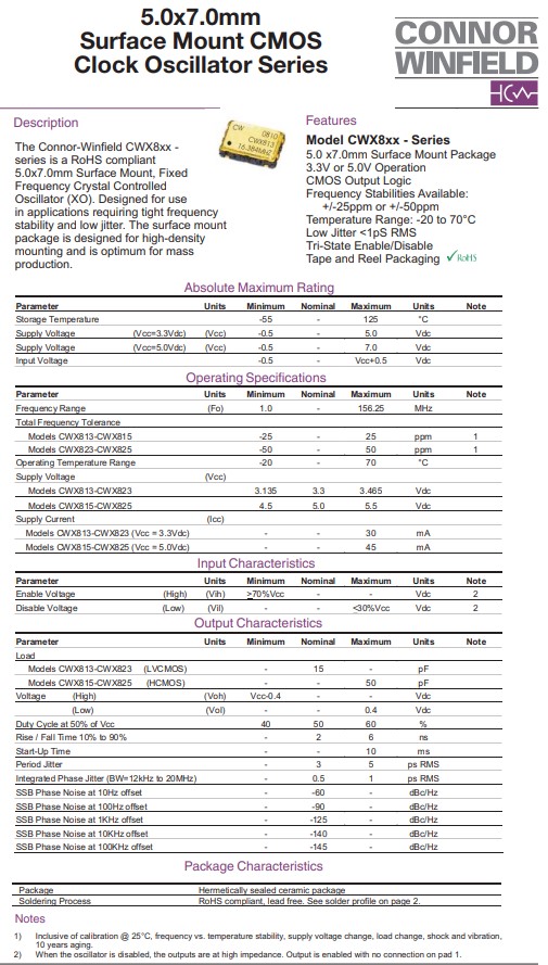 | CWX823-050.0M | ConnorWinfield | CWX823 | 50MHz | -20°C ~ 70°C | 4-SMD, No Lead |