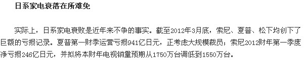 這次釣魚島事件與之前簽訂的《馬關(guān)條約》密切相關(guān),日本一次次潛入中國領(lǐng)土釣魚島,直至2012年9月3日日本提出購買該島嶼中方堅決反對,目前是怎樣中國是否達成協(xié)議?中國的領(lǐng)土作為中國人怎么會同意自己的東西分給欺凌自己的敵人,今日在網(wǎng)上看到一篇關(guān)于釣魚島引發(fā)的事件,日系家電上月起在華銷量全線大跌釣魚島事件成衰退催化劑,蘇寧國美一直銷售夏普,索尼,松下,東芝等日資彩電,據(jù)調(diào)查近月銷售明顯下滑,.jpg)