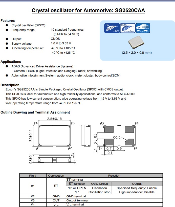 愛普生SG2520CAA具有高響應(yīng)速度的2520封裝汽車級(jí)晶振,X1G005951001216,CMOS輸出晶體振蕩器|
