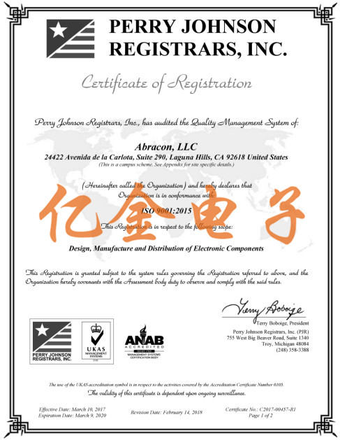 - [2019-03-01]Abracon晶振集團(tuán)不使用沖突礦物證書(shū)
