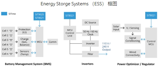這些系統需要承受各種因素,因為它們會受到溫度變化的影響,根據它們的部署位置,溫度變化可能會非常極端。SiTime 時序解決方案具有溫度穩(wěn)定性和擴展溫度能力,無論您是在設計 BMS、逆變器還是功率優(yōu)化器,都是理想的解決方案,如下所示。