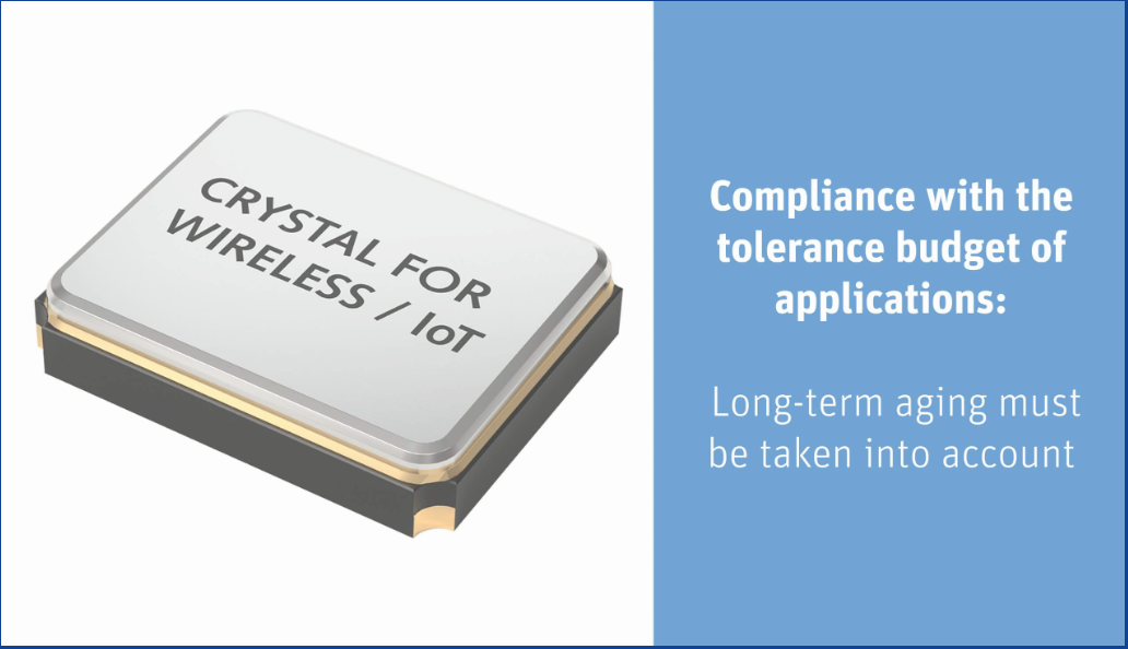 必須考慮應用產品的老化長期公差預算,每個晶振都有一個公差預算,在即使在最壞的情況下也必須遵守的頻率偏差以確保應用程序正常運行。因此,開發(fā)人員必須了解可能導致頻率偏差的所有因素。所有的總和這些因素的最壞情況不得超過應用使用范圍。